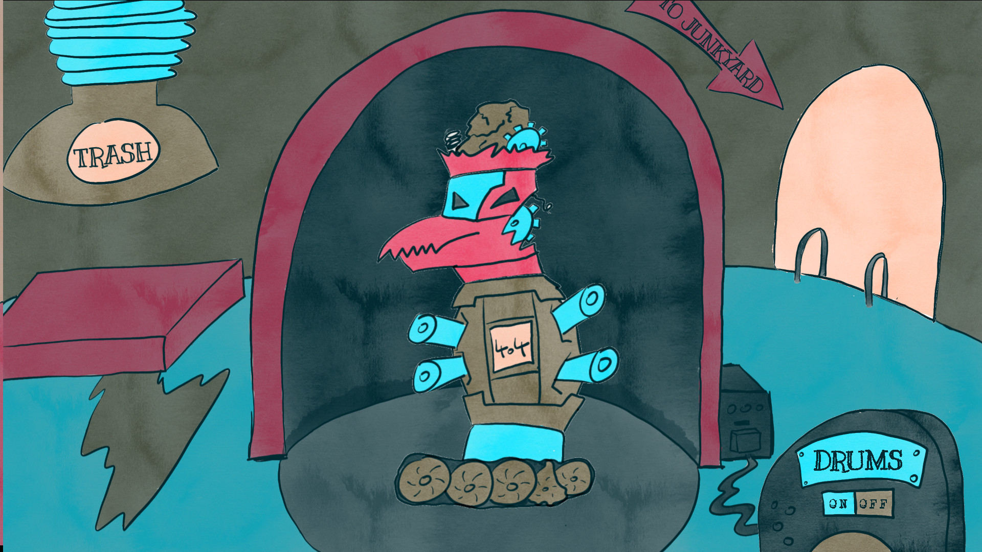 Play around with some robot parts in the junkyard, bring a piece into your workshop, mash it together with some other parts to make your own sound loop.